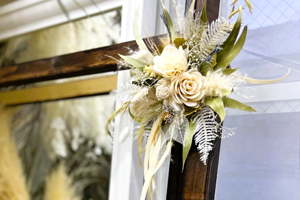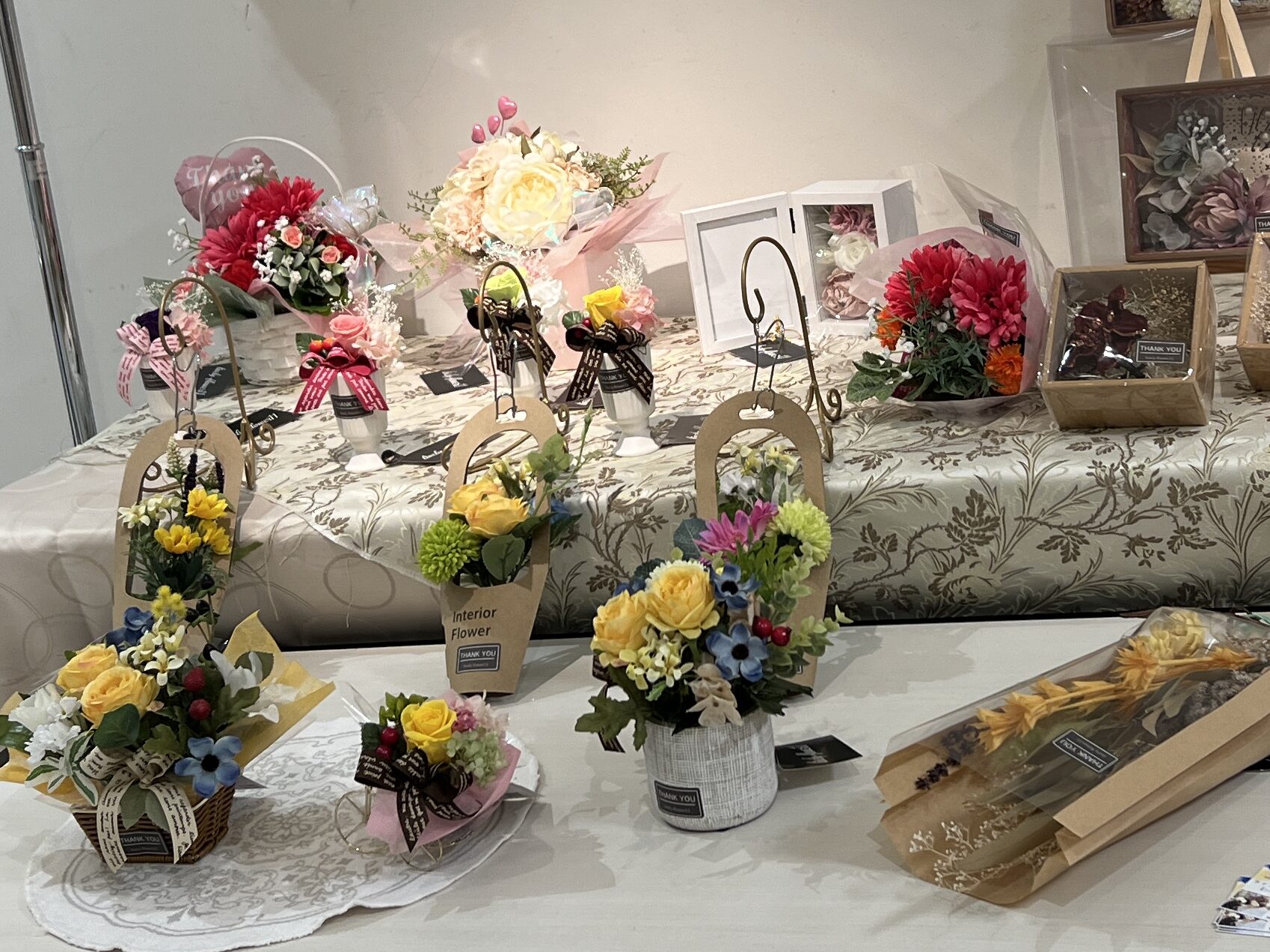 ハンドメイド教室では、お花やリボンを使った温もりあふれる雑貨づくりを楽しんでいただけます。